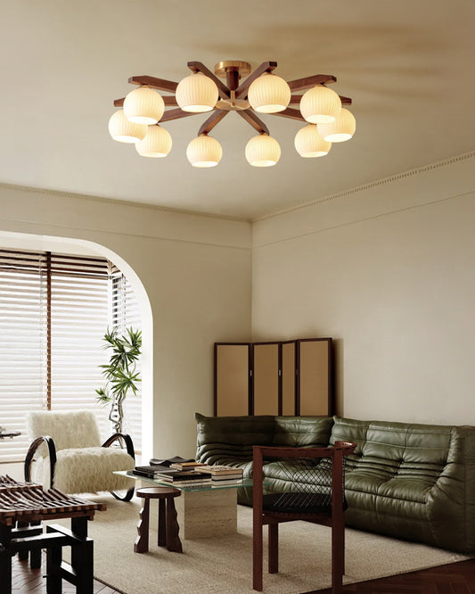 WOMO Ribbed Glass Arm Semi Flush Mount Ceiling Light-WM1210