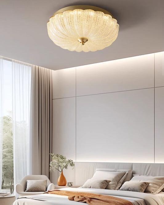 WOMO Textured Glass Scalloped Flush Mount Ceiling Light-WM1178