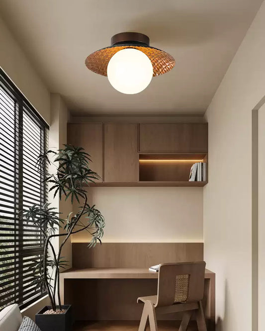 WOMO Walnut/White Round Ceiling Light-WM1204