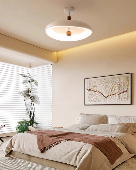 WOMO White/Walnut Round Ceiling Light-WM1192