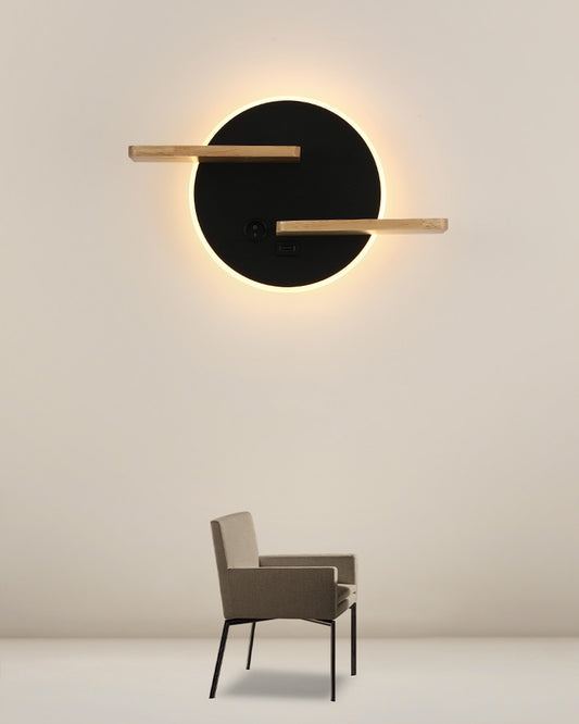 WOMO Round Accent Wall Sconce with Shelf, Switch and USB-WM6084