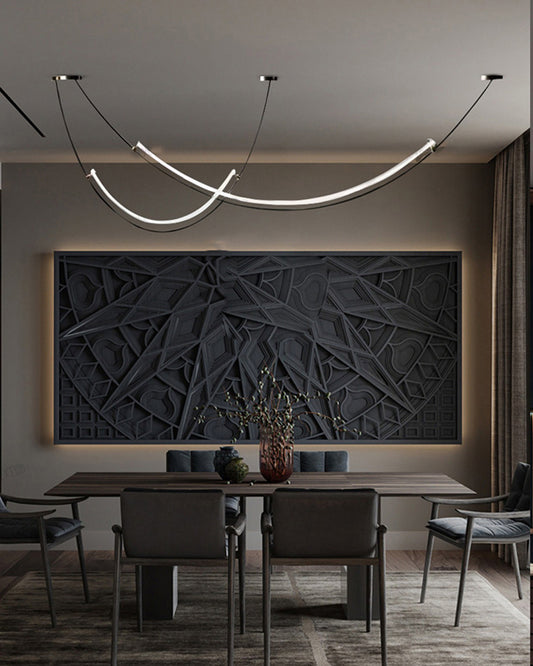 WOMO Black Ribbed Glass Linear Pendant Light-WM2308