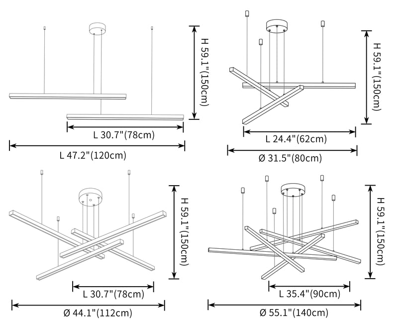 Elevate your living space with the WOMO Multi Light Sticks LED Chandelier! This minimalist chandelier features multiple linear LED lights that can be arranged in a pattern of your choice. Available in black or gold, it adds a touch of modern elegance to any living or dining room. Illuminate your home in style!