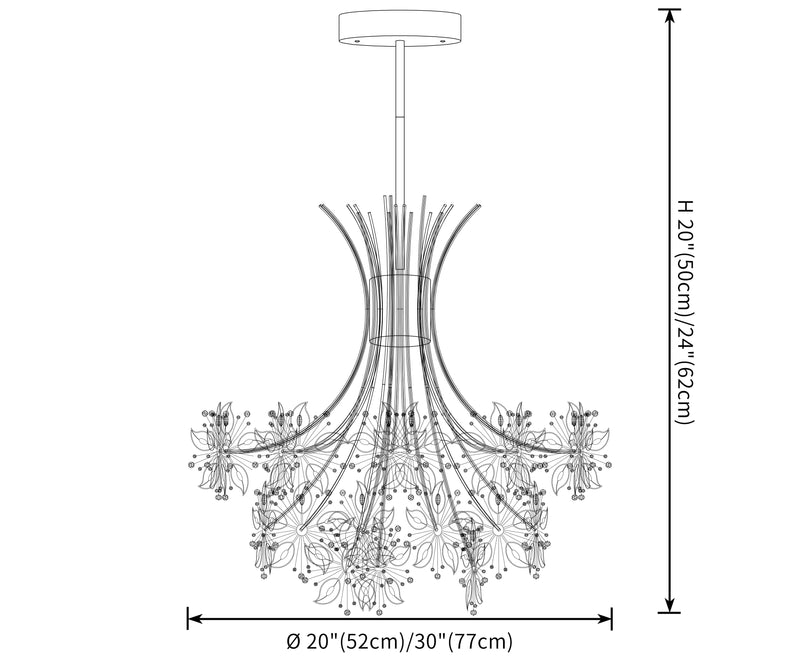 19 lights Ø30.3"×H24"(Ø77cm×H62cm):57W (4560lm)
