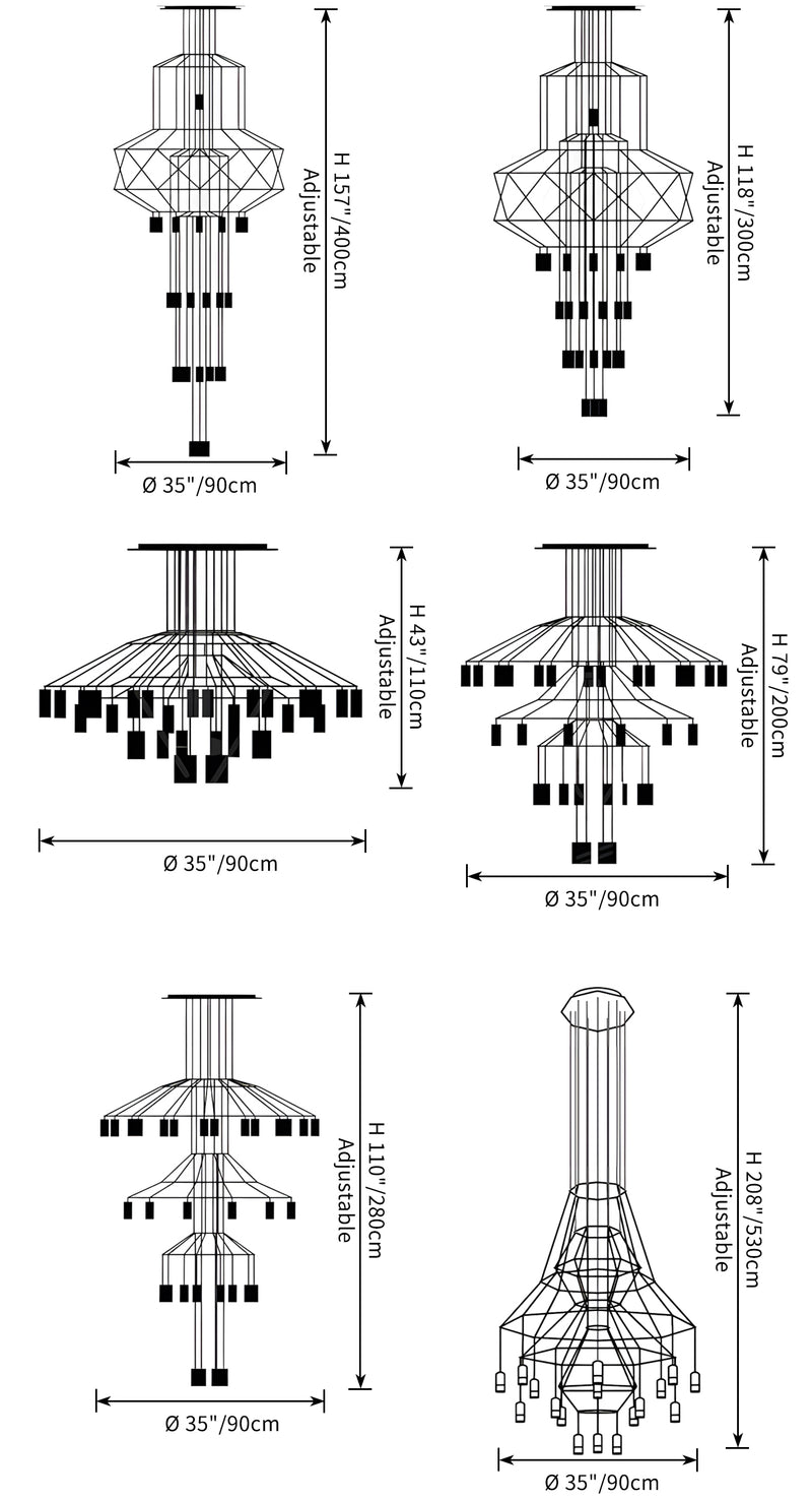 Illuminate your space with the sleek, modern WOMO Wire Tiered Sculptural chandelier. This grand chandelier is perfect for any indoor space from living rooms to staircase, and its contemporary design is sure to make a statement. With its decorative artistic elegance, this chandelier will bring sophistication and grace to your home.