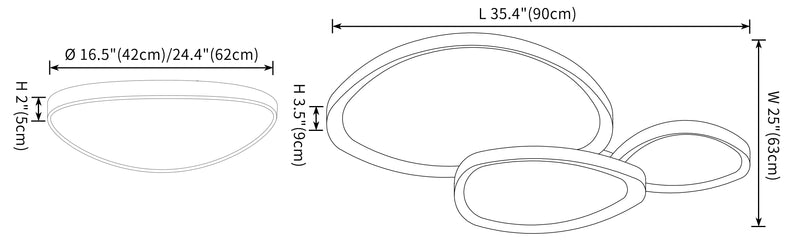 L35.4"×W25"×H3.5"(Ø90cm×W63cm×H9cm): 84W(5600lm)