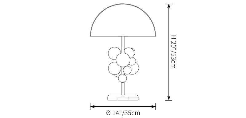 Float into our world of dreamy orbs and cabochons. A constellation of acrylic spheres floats on a slim brass stem anchored by a sculptural marble base and topped with a brass dome. The shade refracts the light, makes the orbs sparkle, and creates a warm glow. Choose clear for a soupçon of hard glamour or opt for the carefully choreographed jewel-toned clusters. The sculptural Table Lamp will resuscitate conventional interiors.