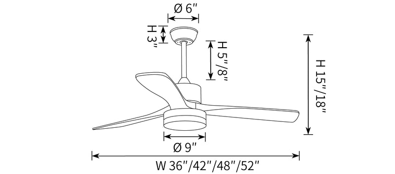 Upgrade your living space with the mid century modern WOMO 3 Blade Ceiling Fan Lamp-WM5068! Enjoy the benefits of a white, black, and wood design that complements any dining room or bedroom. Stay cool and add a touch of elegance to your home with this versatile and functional ceiling fan.