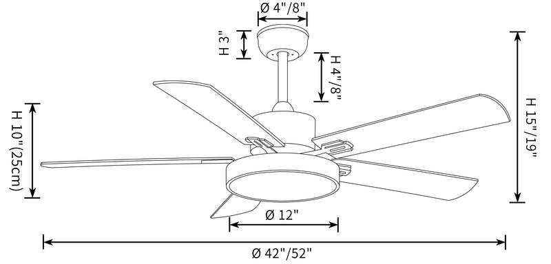 - Includes two downrods: 4 inches (shortest) and 8 inches.