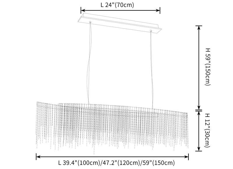 Elevate your space with the WOMO Fringe Linear Chandelier-WM2062b. Available in silver or gold, its contemporary design and elegant fringe detail make a timeless statement in any room. Made of metal and crafted with passion, this chandelier adds a touch of luxury to your home.