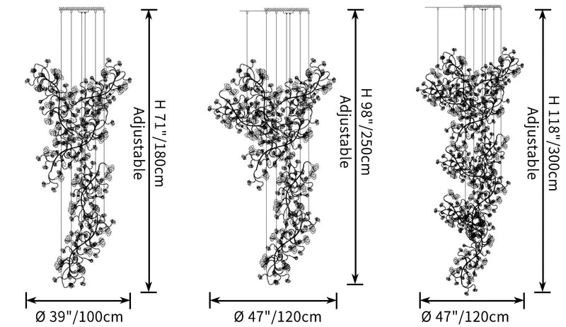 This ceramic ginkgo chandelier features a cascading arrangement of delicate shiny white ginkgo leaves accented with gold details, creating an ethereal and nature-inspired aesthetic. The soft, diffused lighting enhances its elegant and artistic appeal, making it a stunning centerpiece for grand staircases, foyer, or luxury interiors.