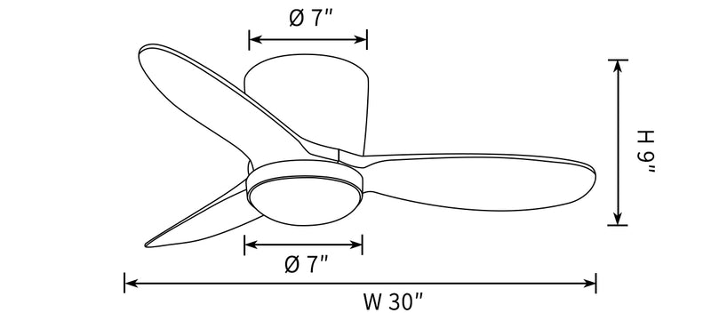 WOMO 3 Blade Low Profile Ceiling Fan Lamp - WM5253