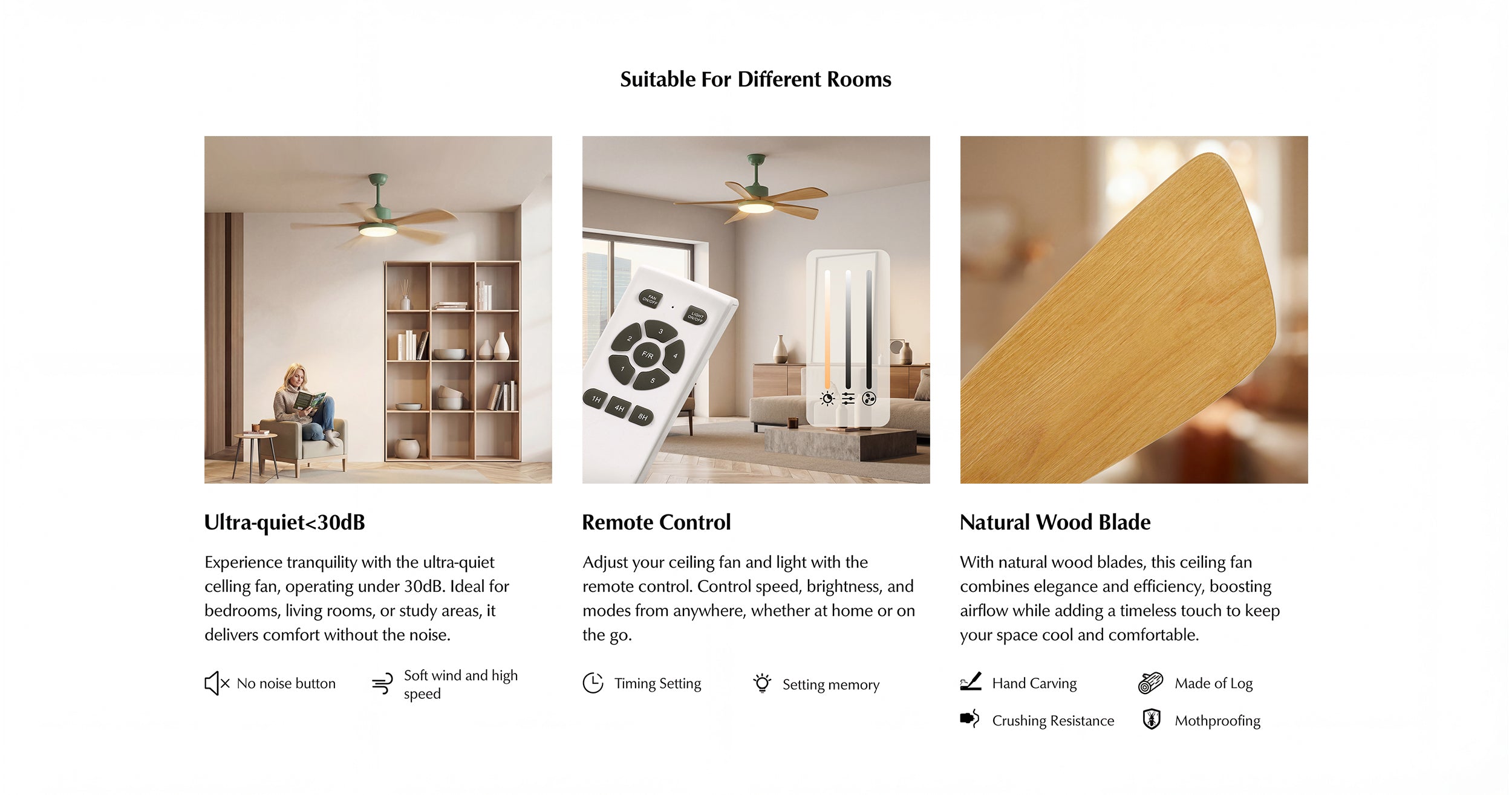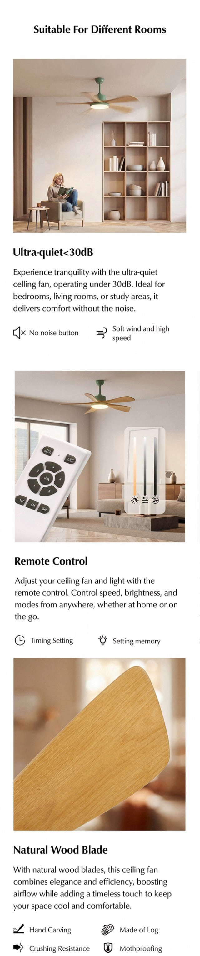 Transform your living room, bedroom, or dining room into a cozy and stylish space with the WOMO Scandinavian Ceiling Fan with Light-WM5002. Enjoy the perfect combination of functionality and design, with a sleek and modern fan that adds a refreshing breeze and warm lighting to any room.