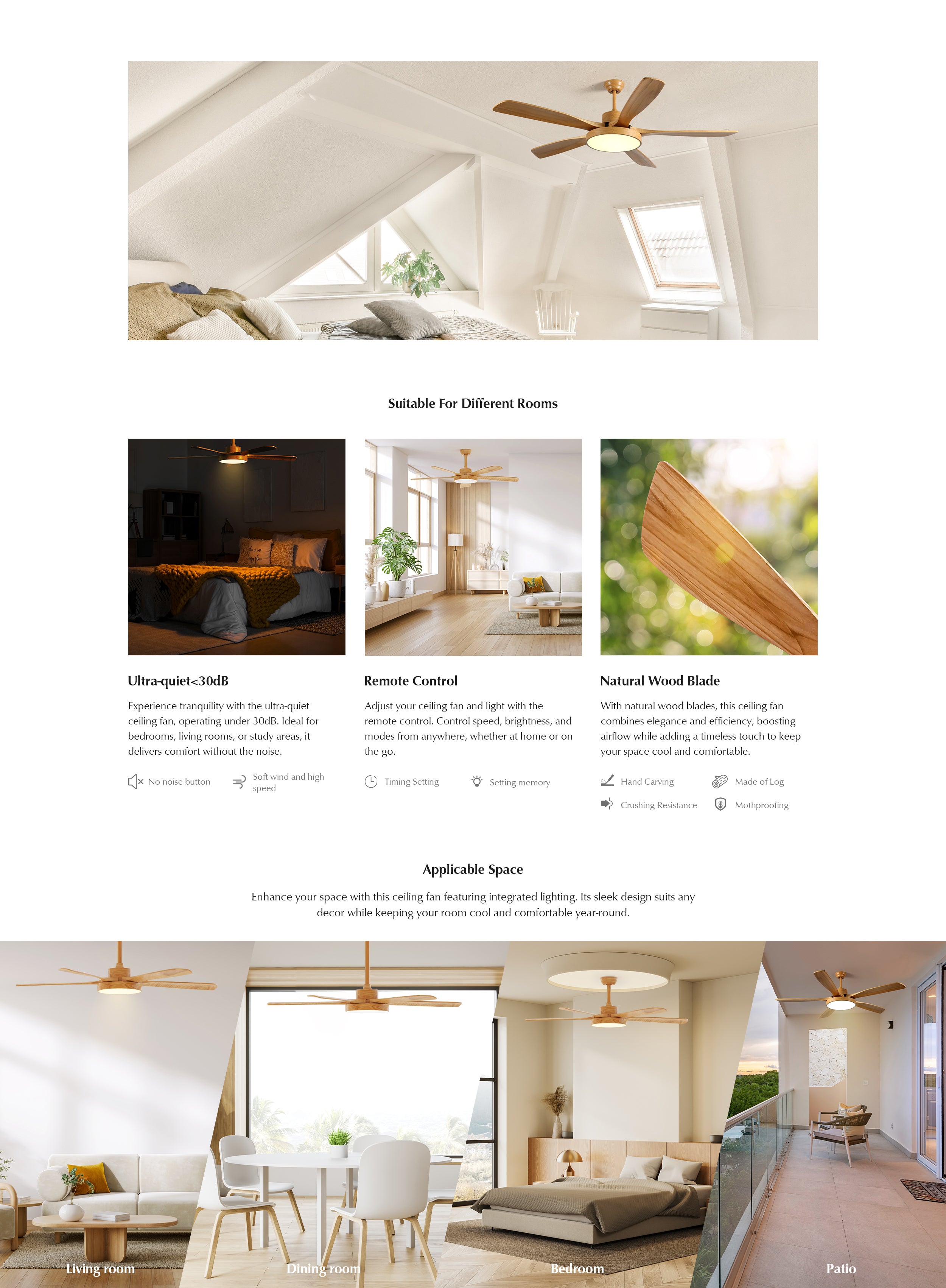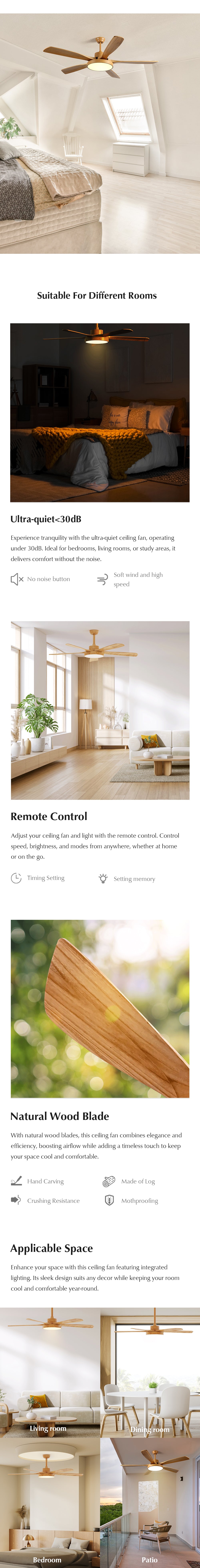 WOMO Low Profile Wood Ceiling Fan Lamp-WM5014