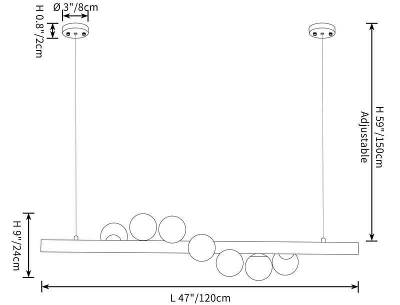 The Willow Horizontal Chandelier brings a chic and intriguing design that draws inspiration from nature to your kitchen or dining room. this light fixture features globe lampshades in spiral around a slim oak beam to exhibit a modern sophisticated appeal, The wooden branch holds hand blown glass globes like spring buds nestled in, waiting to fully bloom. A metal backplate completes the look. With the natural sense. It will make you feel comfortable and love it. Suitable for collocating with other wooden furniture.